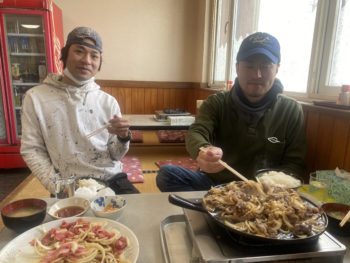 社員達と食べるバラ焼きは